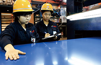 目前,鍍鋁鋅一線生產正常,日產量在600噸以上,已經進入緊張生產狀態